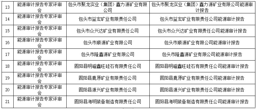 2021年5月18、19日,受包頭市固陽縣發(fā)展和改革委員會(huì)委托,我公司在包頭市固陽縣政府會(huì)議室主持召開了為期兩天的固陽縣重點(diǎn)用能企業(yè)能源審計(jì)報(bào)告的專家評(píng)審會(huì)。
